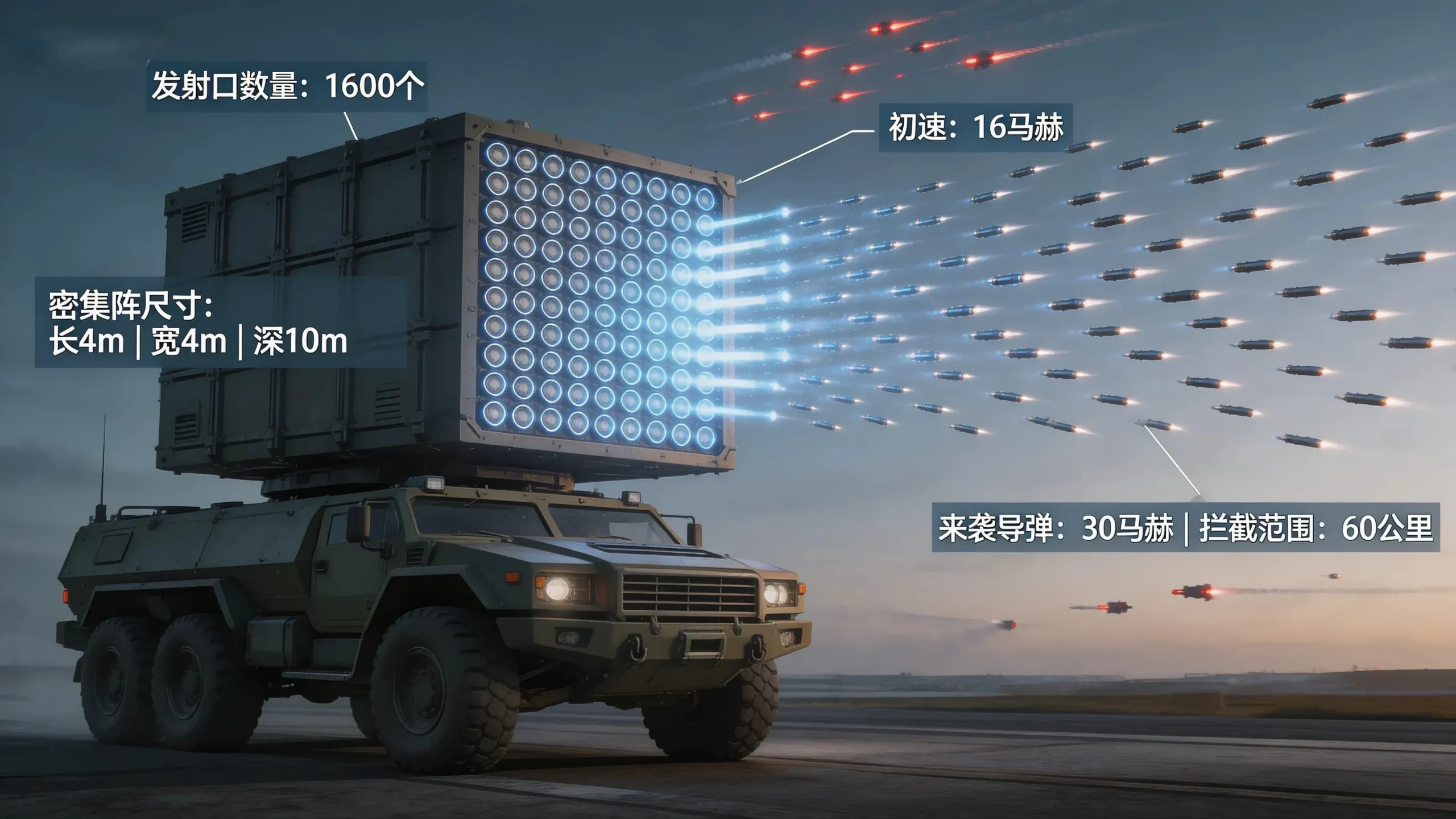 - 形成高密度动能拦截网,可物理粉碎残余弹头、无人机蜂群及超音速巡航导弹,构成最后一道不可逾越的铜墙铁壁。